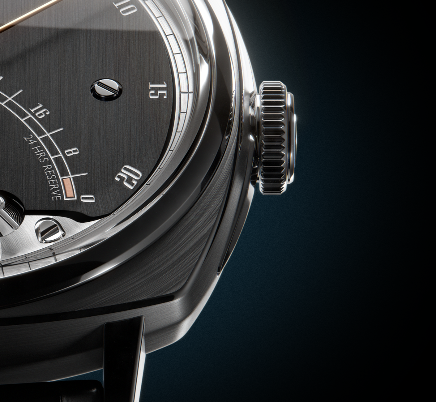 • 7-day power-reserve indicator with special double retrograde, non-linear display (6 days + last 24 hours)