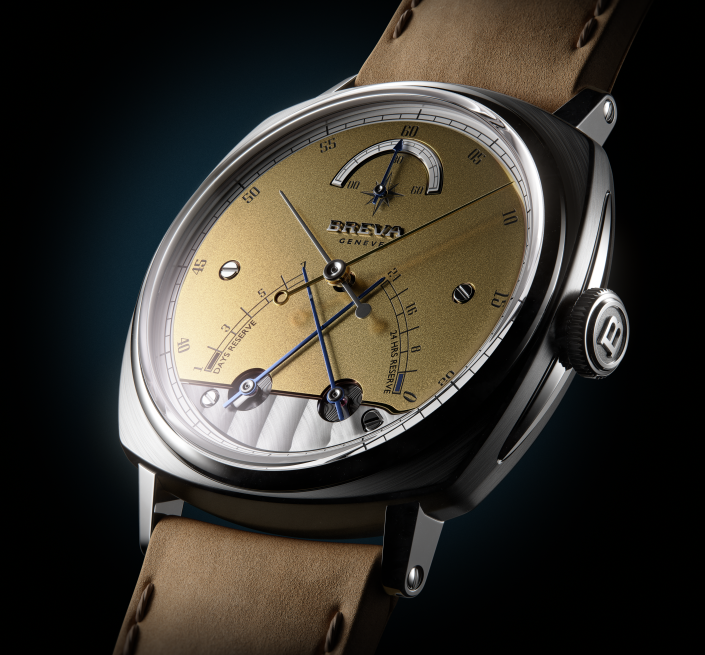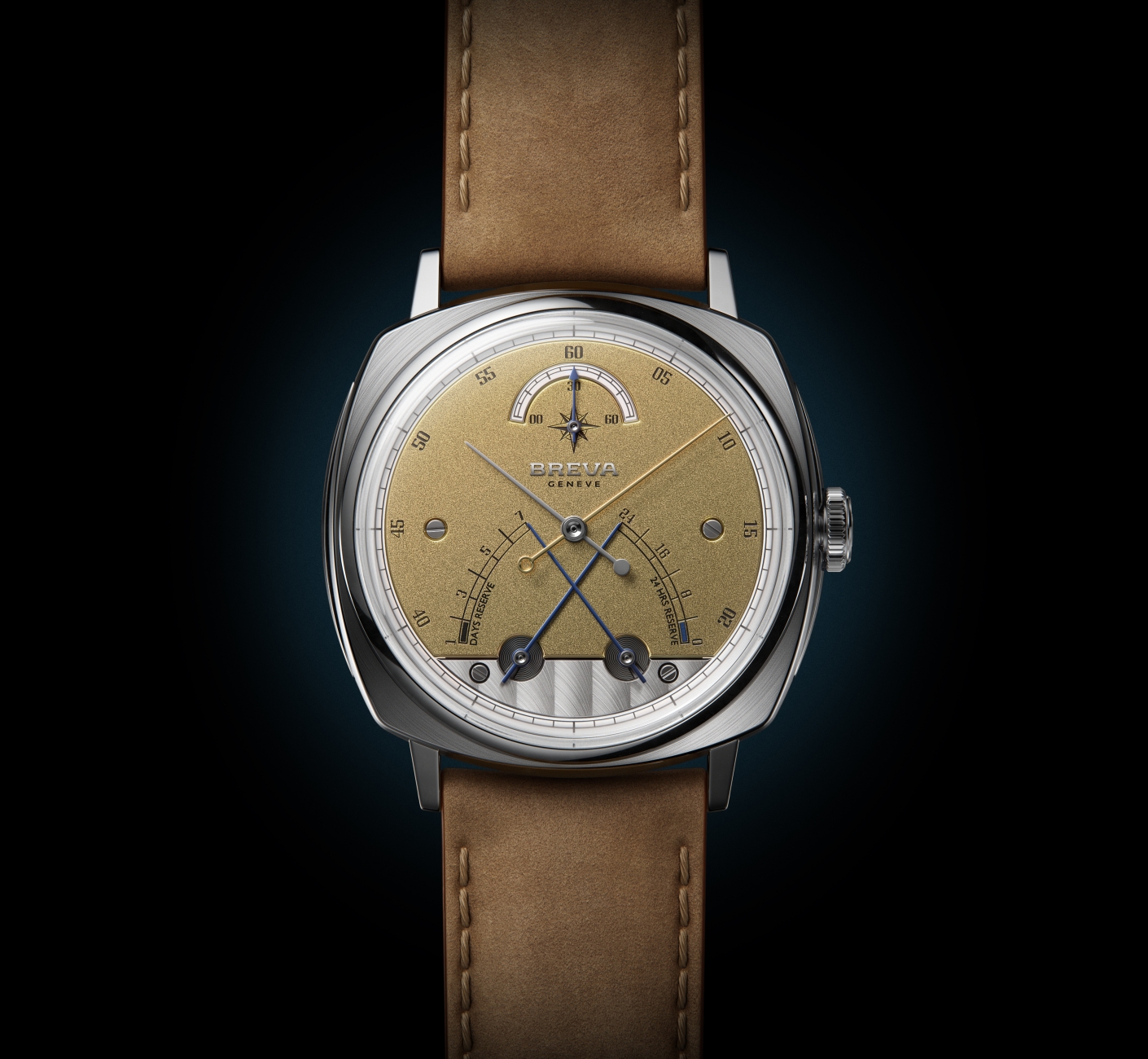 - Manual wound mechanical movement, triple retrograde, 7-day power reserve, exclusively developed for BREVA GENEVE by Jean-François Mojon/Chronode